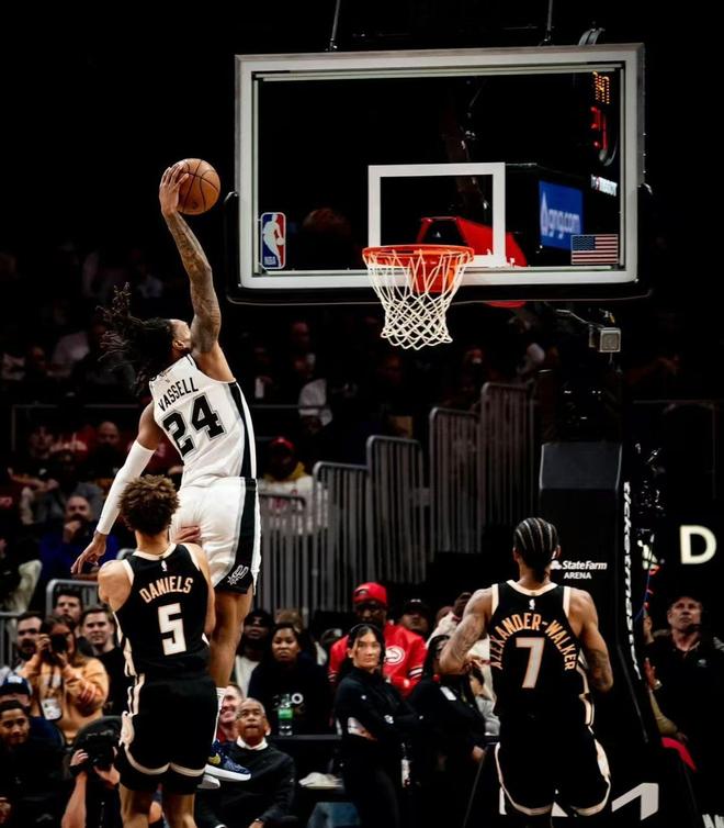 文班亚马本场继续替补出战!一开场,马刺打的很主动,连砍5分取得领先,沃克、约翰逊联手给予回应,但卡斯尔、瓦塞尔状态火热,瓦塞尔连中3分,卡斯尔不断冲击篮下取分,2人单节得分都超过了10分,带领马刺继续保持优势!而在首节最后4分钟,老鹰更是哑火,一分没得,马刺顺势拉开13分分差!老鹰次节进攻有所回暖,克难的、纽厄尔纷纷开火,丹尼尔斯、沃克也继续发力,但是老鹰虽然进攻尚可,但防守端却限制不住马刺的发挥,尤其是文班中投、篮下予取予夺,马刺单节轰下36分,半场拉开了24分的差距!